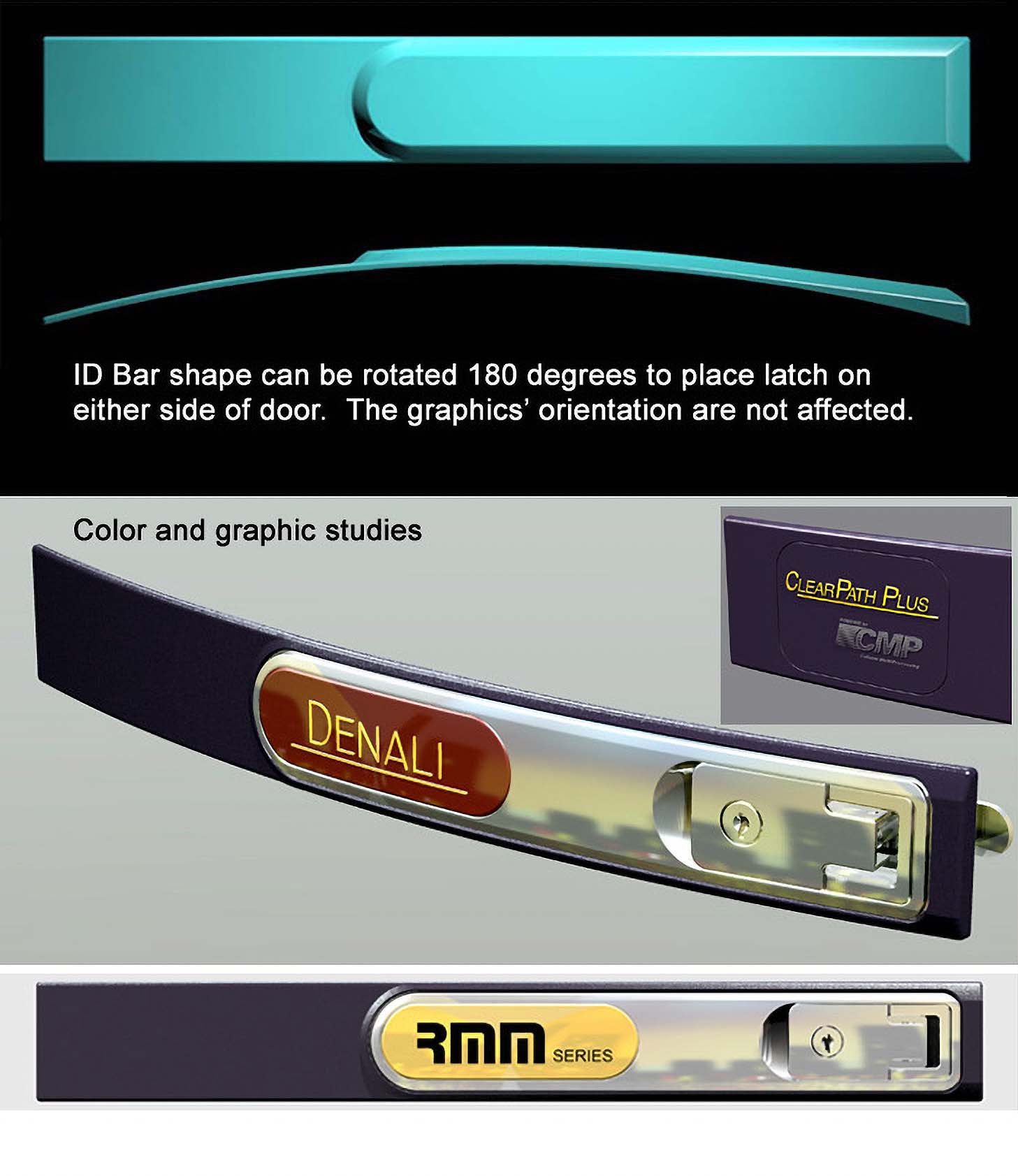 Design an identification bar for the latch area of this existing Main Frame computer cabinet door. The bar had to accomodate the latch being placed on either side so the door could be hinged on either side.